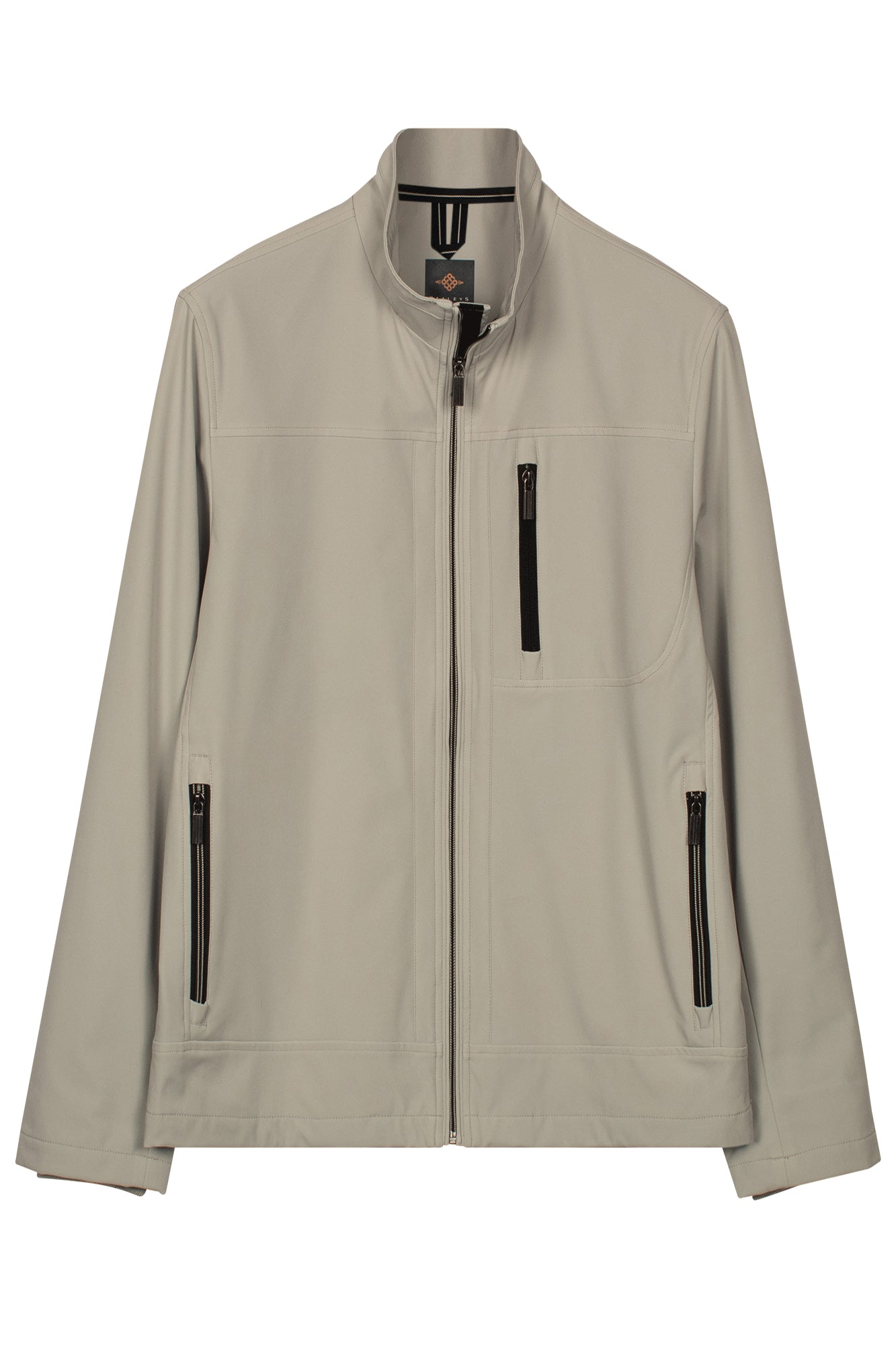 Trim in the zips and matching piping inside collar